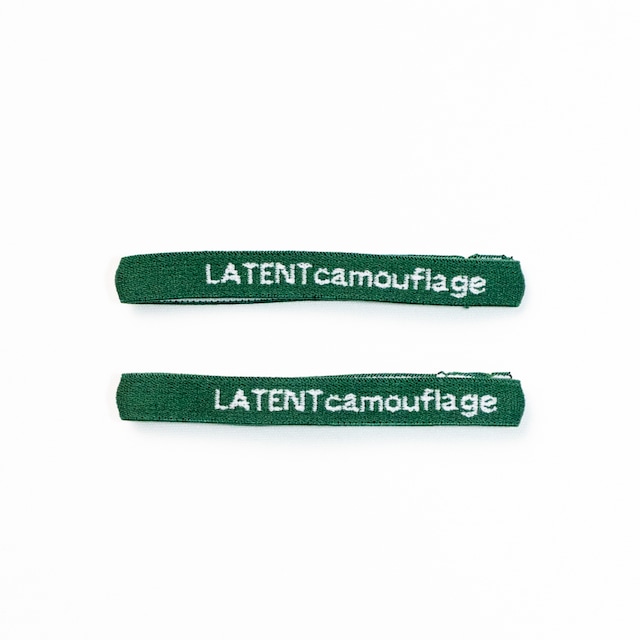 LATENT camouflage A&A Elastic Color:GREEN Size:H 1cm × W 9cm 洋服をまるめたり、カギや車のキーなどに付けたり、おかしの袋を縛ったりと様々な用途に使用できる便利なバンドになります。 裏には滑り止めが付いています。 2本セット。 LATENT camouflage https://www.instagram.com/latentcamouflage?utm_source=ig_web_button_share_sheet&igsh=ZDNlZDc0MzIxNw==