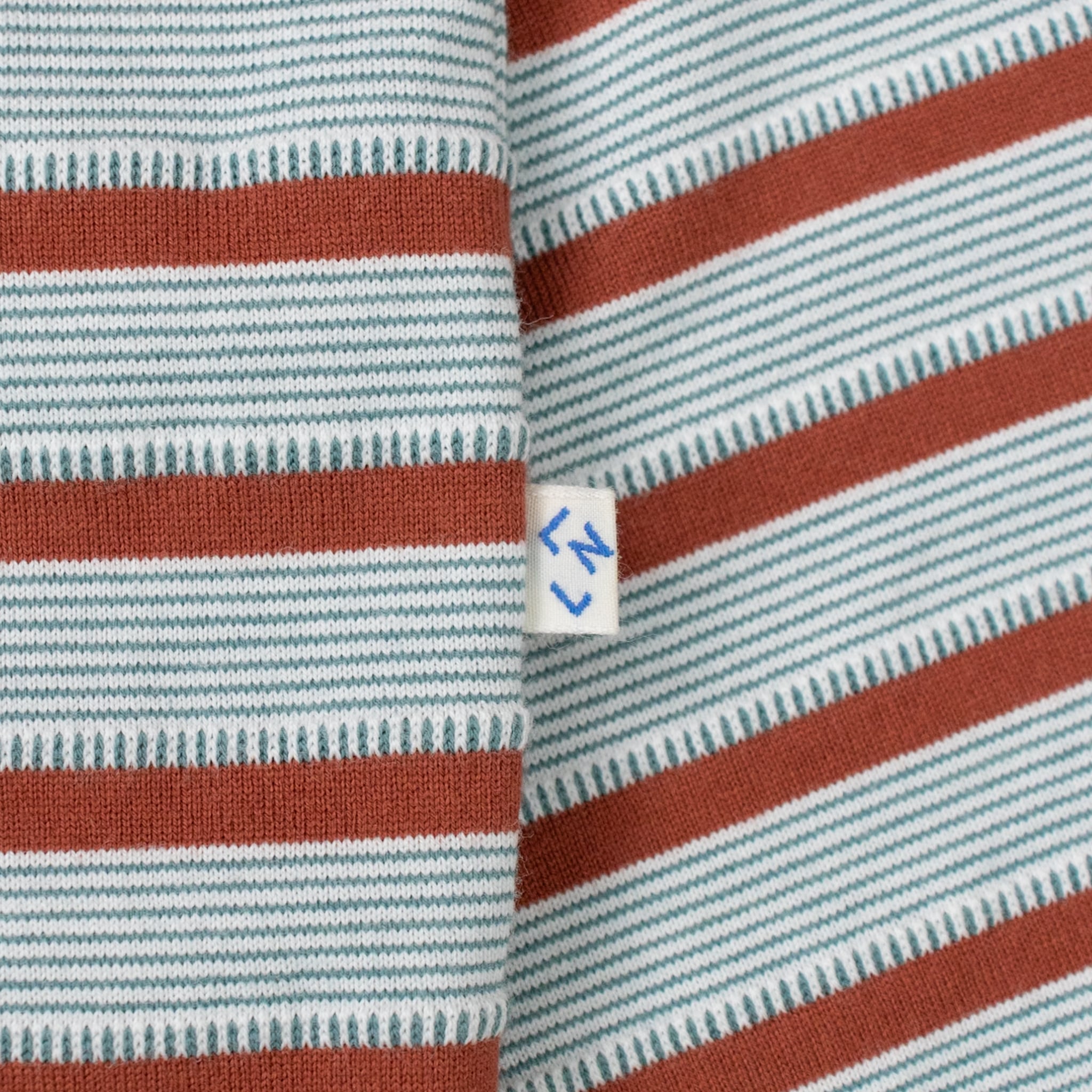 タンブラーをかける事で偶然生まれるカットソーとジャガードの縮率差による不均一な凹凸が特徴。