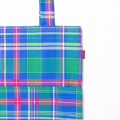 ブルー、グリーンのチェック柄のコットン生地