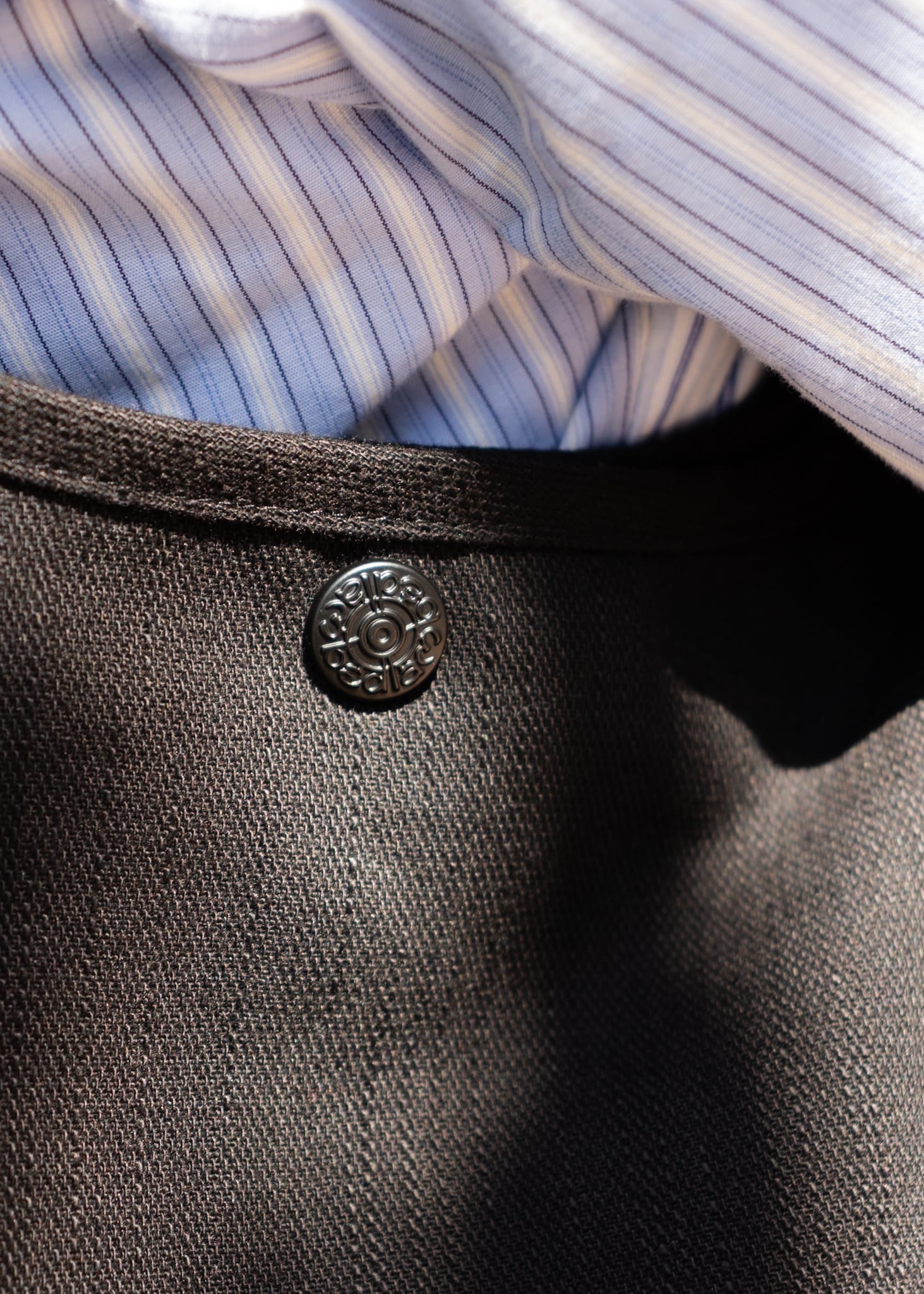 厚みと柔らかさ、光沢感があるコットン生地が使われており、ハンドル部分にスエードの切り替えし、バッグ内に2つの収納ポケットが付いたトートバッグになります。